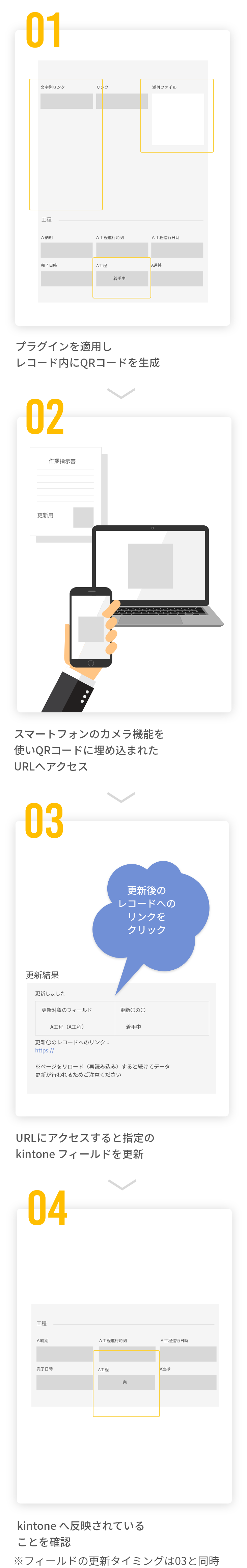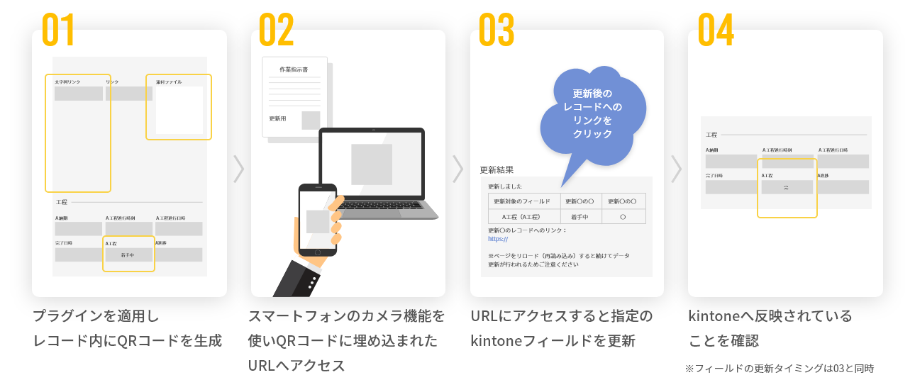 スマートフォンのカメラで読み込みアクセスすると、予め指定しておいたフィールドを更新します。