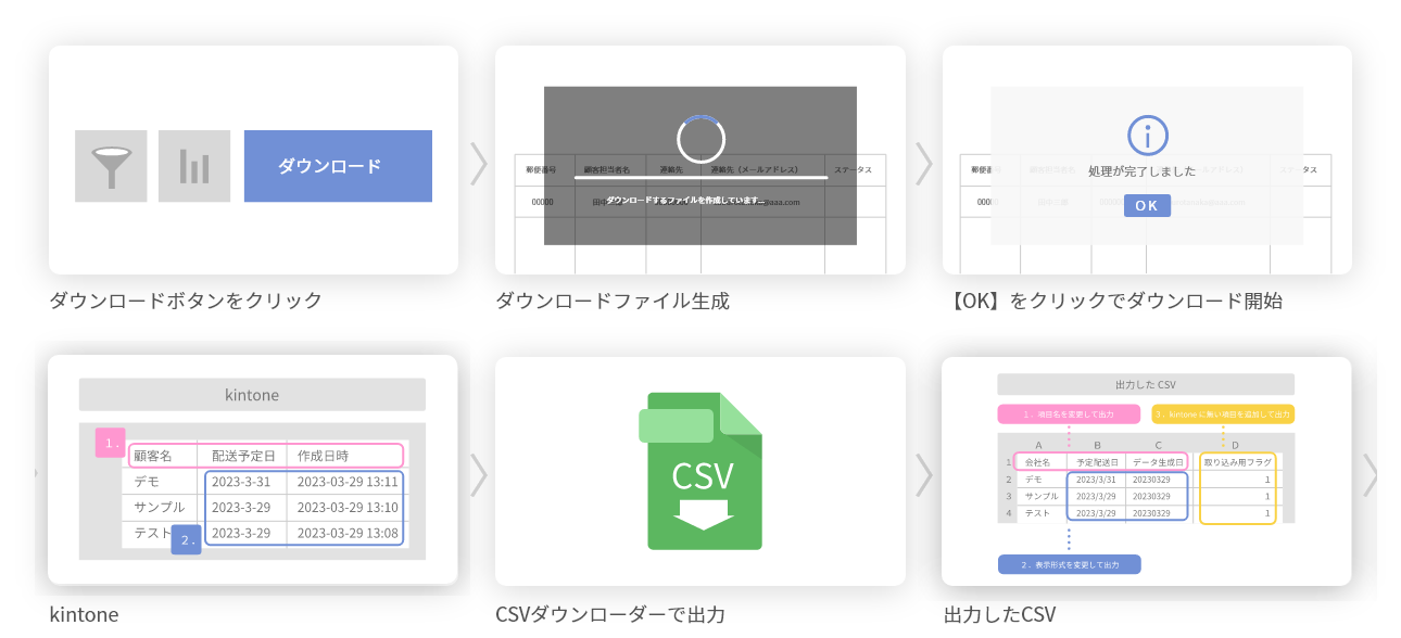 kintone のレコードを、カスタマイズしたCSVファイルでダウンロードします。