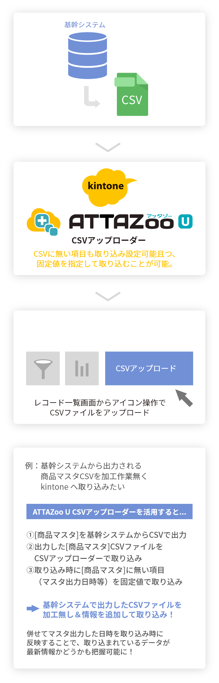 これまで必要だった CSVファイルの加工ステップを削減することができます。