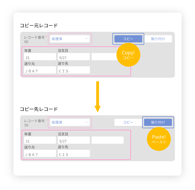 本プラグインを利用することで、予め指定した複数のフィールドを1クリックでコピー&ペーストを行えるようになります。