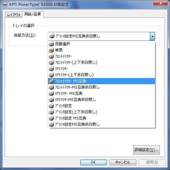 この場合、下記バージョン以降のドライバへバージョンアップし、「給紙方法」の中で「xxxx MS互換」を選択することで、旧OS同梱のプリンタードライバと同じ印字可能領域を使用することが可能になります。