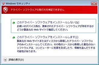 インストール時に「Windows ロゴテストに合格していない」、「ドライバーソフトウェアの発行元が検証できない」旨のメッセージが表示される。